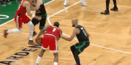 一边目睹哈登再次扛起球队对阵凯尔特人